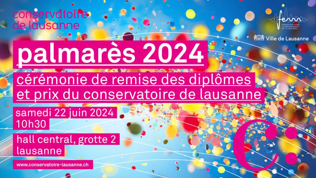 En 2024, le Conservatoire de Lausanne a organisé sa cérémonie annuelle de remise des diplômes et des prix au cœur de son bâtiment. Cet événement a permis de mettre en lumière l’excellence et le dévouement de nos élèves.